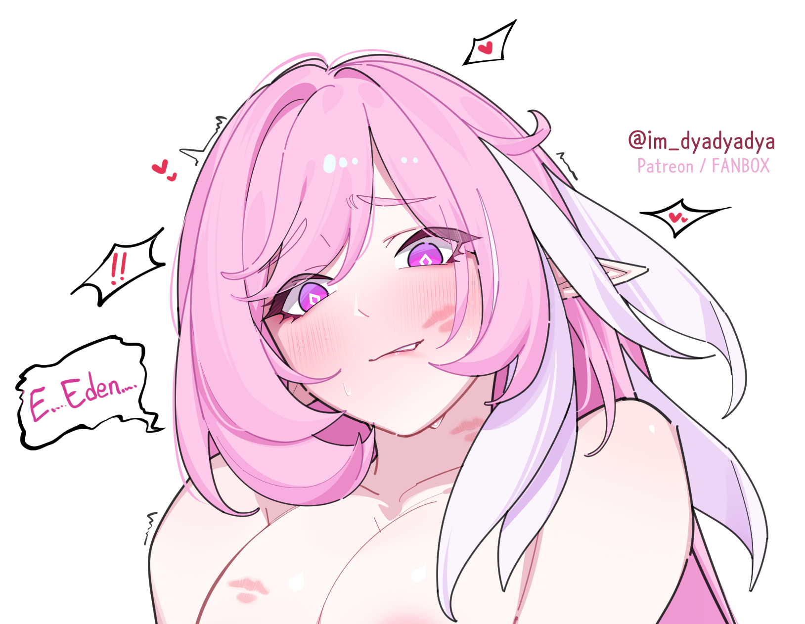 1boy1girlartist nameblushcollarbonediamond (shape)diamond-shaped pupilsenglish textheartimplied nudityimplied yurilipstick marklipstick mark on breastlipstick mark on necklong hairlooking at viewernaughty faceparted lipspink hairpointy earspurple eyessidelockssimple backgroundsmilesolosweatsymbol-shaped pupilstwitchingwhite background