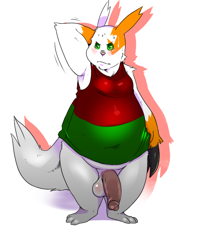 alternate coloralternate speciesanthroanthrofiedball blushballsbarefootblushbottomlessclothingflaccidFlag for Deletionfront viewhandpawhumanoid penislong penismalemale onlymammalmoobsoverweightpawspenispokemonrubbing headsagging ballsshirtsolostandingtank topvideo games