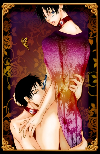 mosha, katsuragi yako, nougami neuro, majin tantei nougami neuro, finger in mouth, 00s, 1boy, 1girl, blonde hair, blush, breasts, brown eyes, clothed male nude female, colored bangs, completely nude, fang, finger sucking, gloves, grabbing another's breast, green eyes, groping, hetero, licking, looking at viewer, multicolored hair, nipples, nude, saliva, short hair, small breasts, sweat, tears, tongue