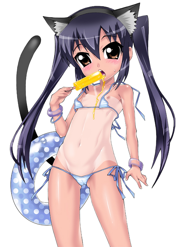 00s1girlanimal earsbikinicameltoecat earscat tailfemale focusflat chestfoodlolilong hairnavelnipplesone-piece tanpopsicleside-tie bikini bottomsolostriped bikinistriped clothesswimsuittailtantanlinetwintailswhite bikini