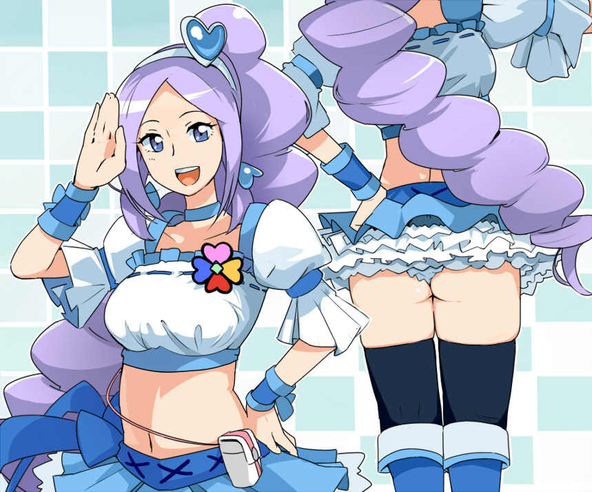 00s1girlassblue eyesblue hairblue skirtbootsdrill hairfemale focushair ornamentheartheart hair ornamentknee bootslong hairmagical girlmatching hair/eyesmidriffnavelskirtsolothighhighs