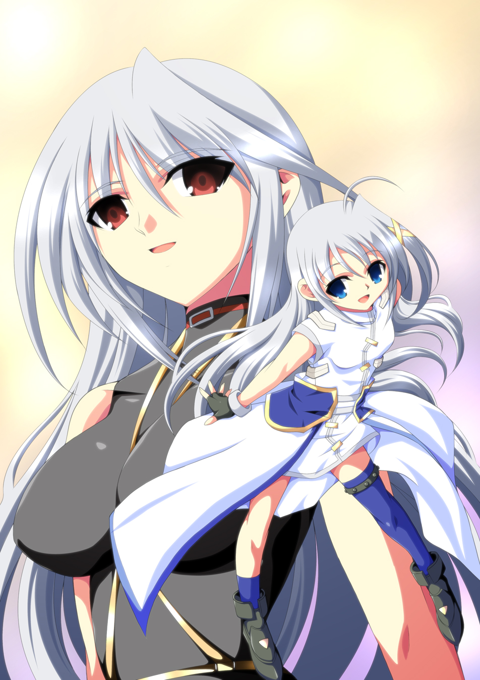 00s2girlsahogeasymmetrical clothesasymmetrical legwearblue eyesfingerless glovesgloveshair ornamentlong hairmagical girlmini personminigirlmultiple girlsred eyessingle thighhighthighhighstime paradoxuneven legwearwaist capex hair ornament