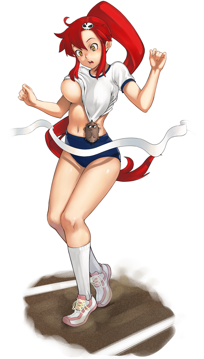 00s1girlblushbreast slipbreastsbrown eyesburumaclothes liftclothes pullfemale focusgym uniformhair ornamentlarge breastslegslong hairnavelponytailred hairrunning trackshirt liftshirt pullshoessneakerssockssolotrack and fieldyellow eyes