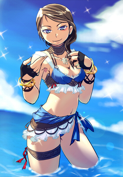 makino haruka (av idol), photo (medium), asian, av idol, bikini, breasts, cleavage, large breasts, outdoors, pool, solo, swimsuit