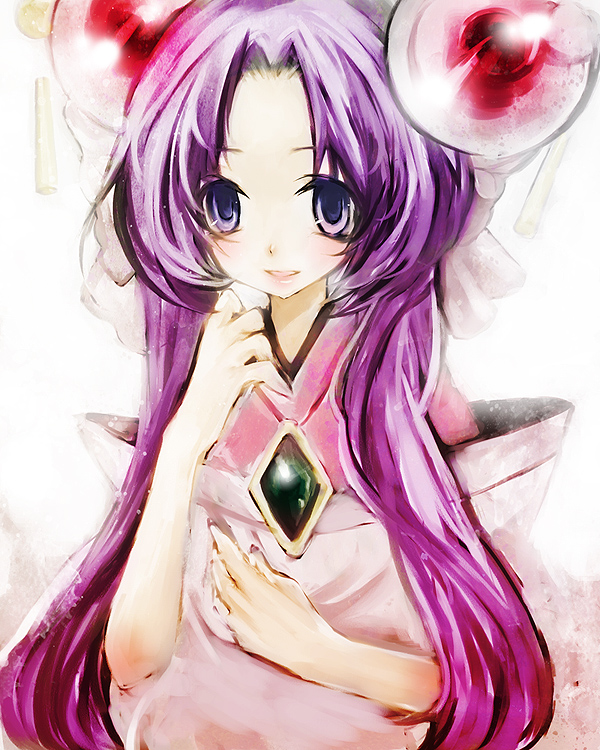 1990s (style)blue eyesblushdresshair ornamentlong hairpurple hairretro artstylesolosphere hair ornamenttwintails
