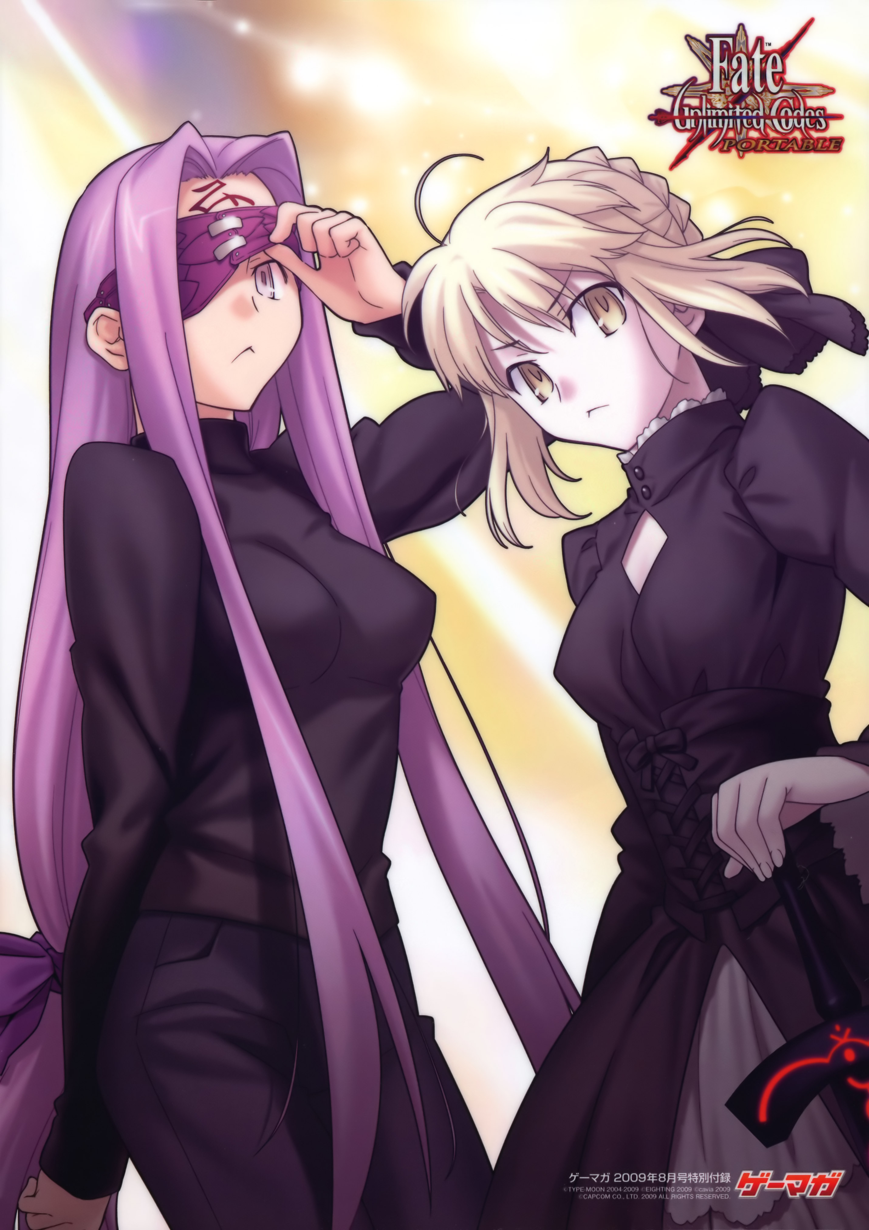 00s1boy20092girlsahogeblack ribbonblindfoldblonde hairbraidbreaker gorgonbreastsbun with braided baseclothing cutoutcopyright logocopyright noticecorsetcovered erect nipplesexcalibur (fate/stay night)excalibur morgan (fate)facial markfingernailsforehead markgothic lolitahair bunhair ribbonhand on hiltimpossible clothesimpossible shirtlogololita fashionlong hairlong sidelockslow-tied long hairmultiple girlsofficial alternate costumepale skinpantspurple eyespurple hairribbonshirtsidelockssingle hair bunsquare pupilsswordvery long hairvery long sidelocksweaponyellow eyes