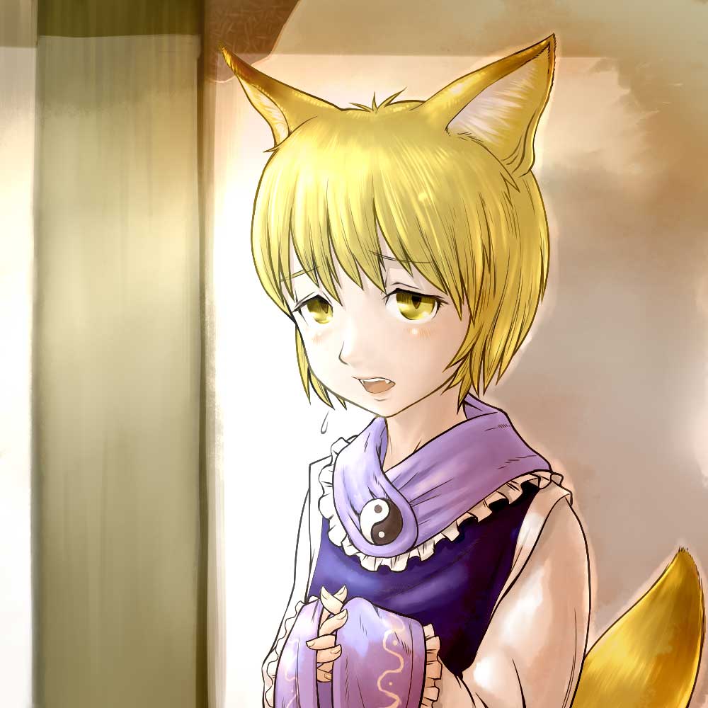 1girlaged downanimal earsblonde hairchildfangsfemale focusfox earsfox tailinterlocked fingerslong sleevesno headwearshort hairsolotailwide sleevesyellow eyesyin yang