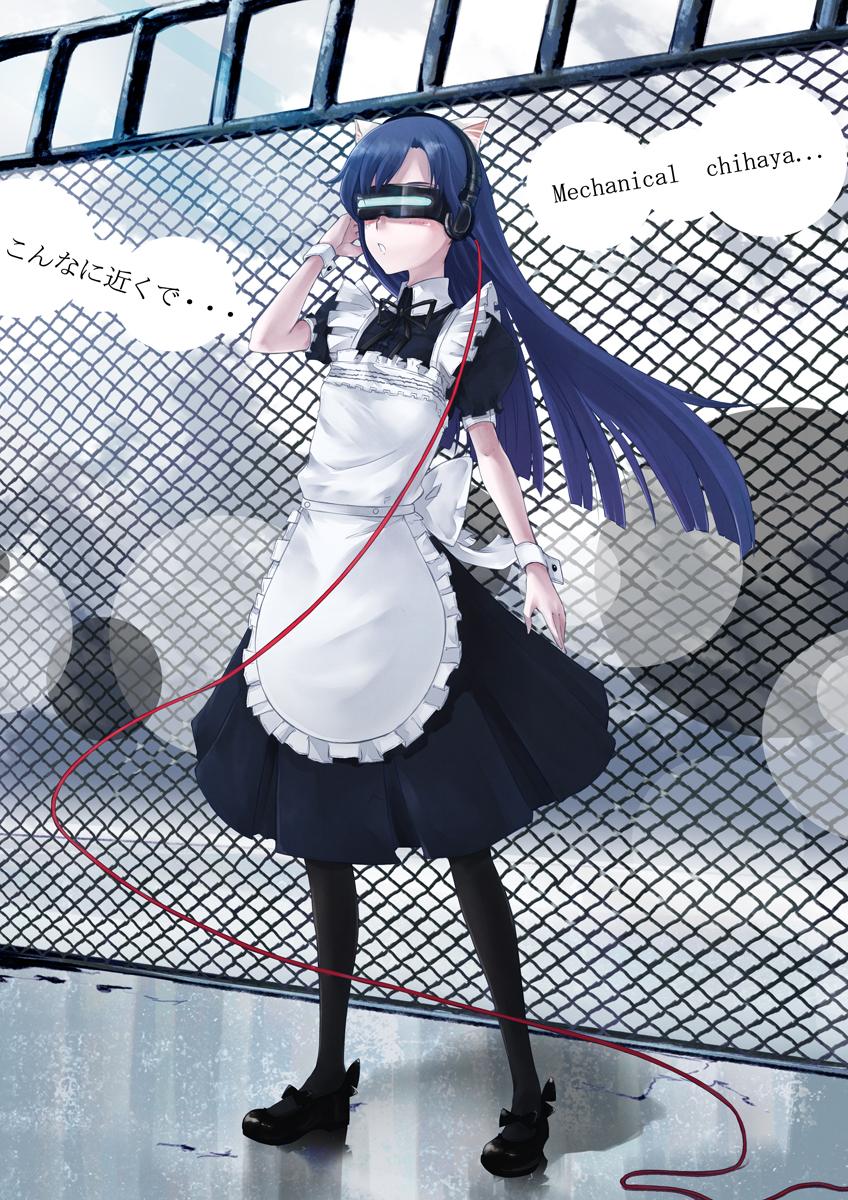 00s1girlanimal earsapronblue haircat earschain-link fencefemale focusfencehead-mounted displaylong hairmaidmaid apronpantyhosesolowrist cuffs