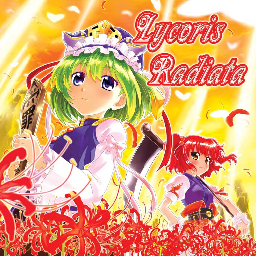 2girlsblue eyesfemale focusflowergreen hairhatmultiple girlsred flowerred hairribbonrod of remorsescytheshort hairspider lilytwintailstwo side up