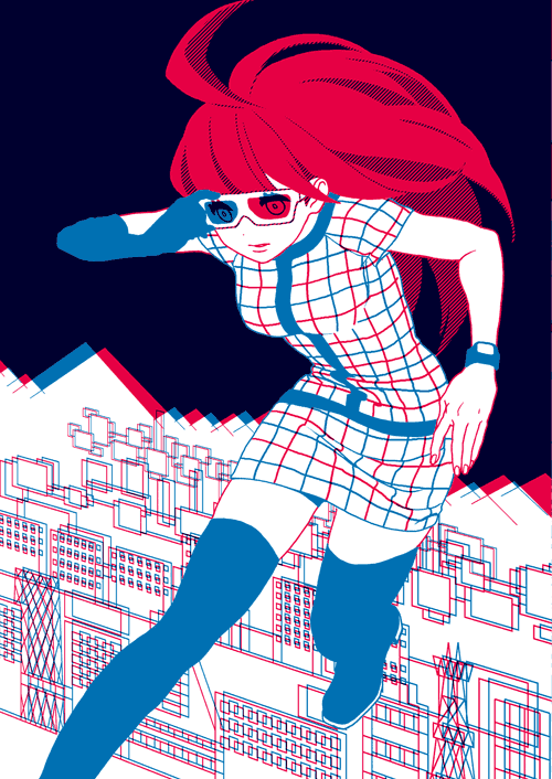 1girl3d glassesanaglyphelbow glovesfemale focusglassesglovesheterochromatic eyewearlong hairpersonificationred hairsingle glovesolothighhighstinted eyewearzettai ryouiki