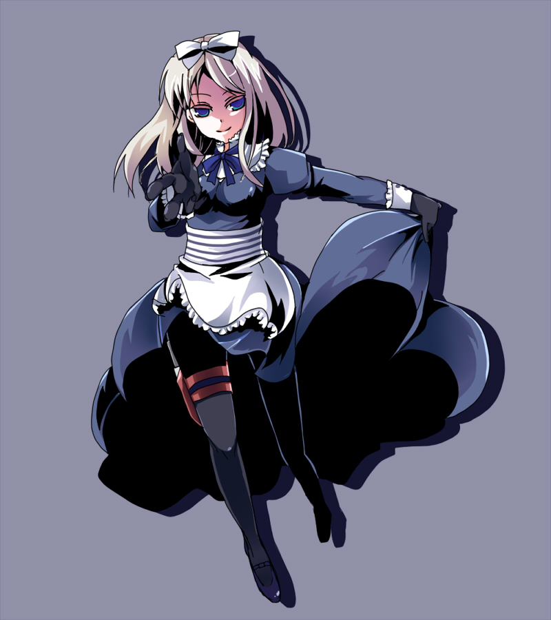 00s1girlapronblonde hairblue eyesbowclothes liftdressdress liftfemale focusfull bodygarter beltgloveshair bowholsterknifepantyhosesolothigh holsterthigh strapthighhighs