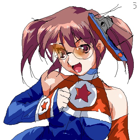 1girlbrown eyesbrown hairdetached sleevesfemale focusgenderswapglassesgloveshair ornamenthappylooking at viewernorth koreanorth korean flagopen mouthsimple backgroundsmilesolowhite background