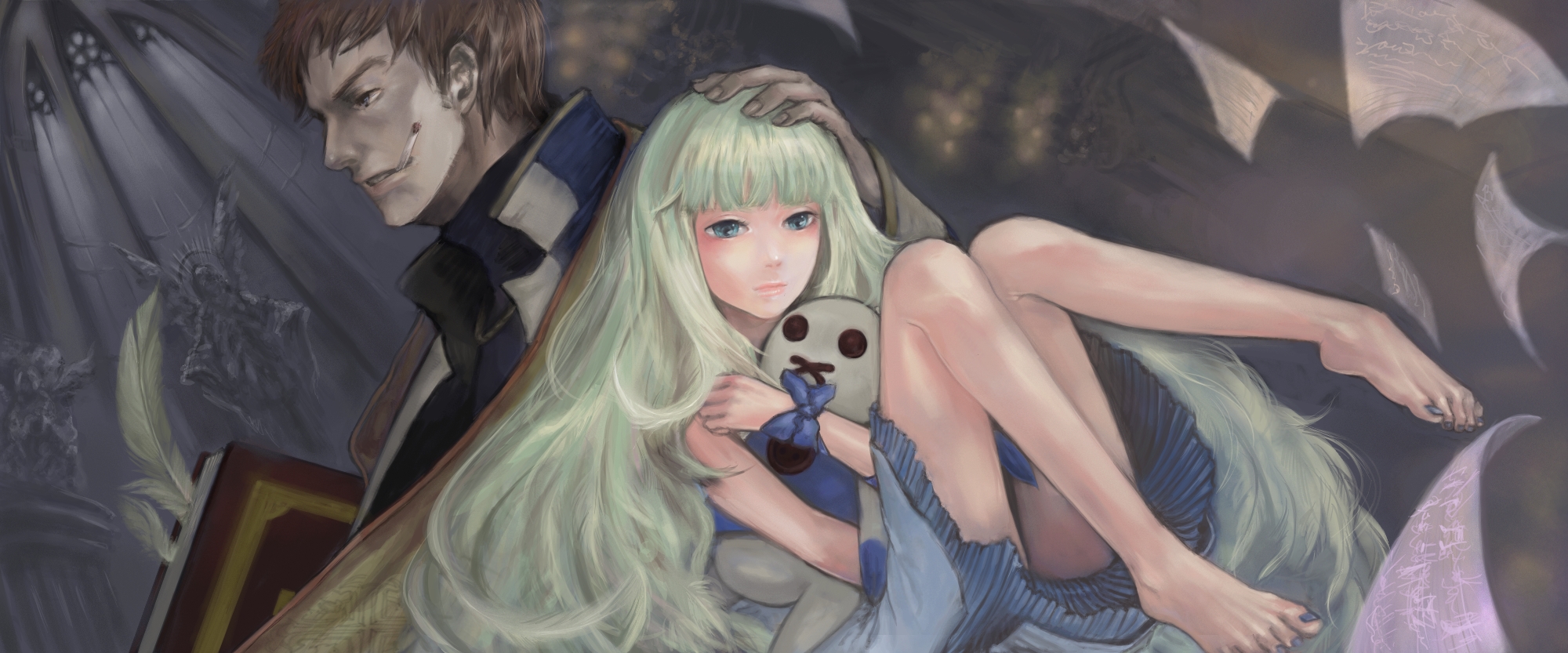 1boy1girlbare legsbarefootblue dressblue eyesblue nail polishblunt bangsbookbowbrown hairbutton eyesbuttonscapecathedralchurchcigarettedark roomdolldressdutch angleexpressionlessfacing viewerfeathersfeetgreen hairhand on another's headhughugging dollhugging objectindoorsknees together feet apartlegslipslong hairmouth holdnail polishnosepainterlyparted lipspriestshort hairsleevelesssleeveless dresssmokingstatuestuffed toyteethteeth holdtoenailstoesvery long hairwristband
