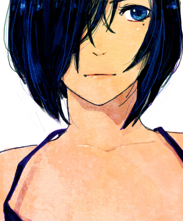 1girlblue eyesblue hairbob cutcollarbonefemale focushair over one eyematching hair/eyesmolemole under eyeoekakiportraitsoloupper body