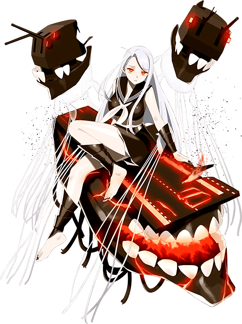 abyssal aircraft carrier wasp princessabyssal shipankle wrapbarefootblack nailsblack sailor collarblack shirtblack skirtbreastscleavageflight deckglowingglowing eyeslarge breastslong hairmessy hairmidriffneckerchiefopen mouthred eyessailor collarshirtskirttransparent backgroundwhite hairwhite neckerchiefwrist wrap