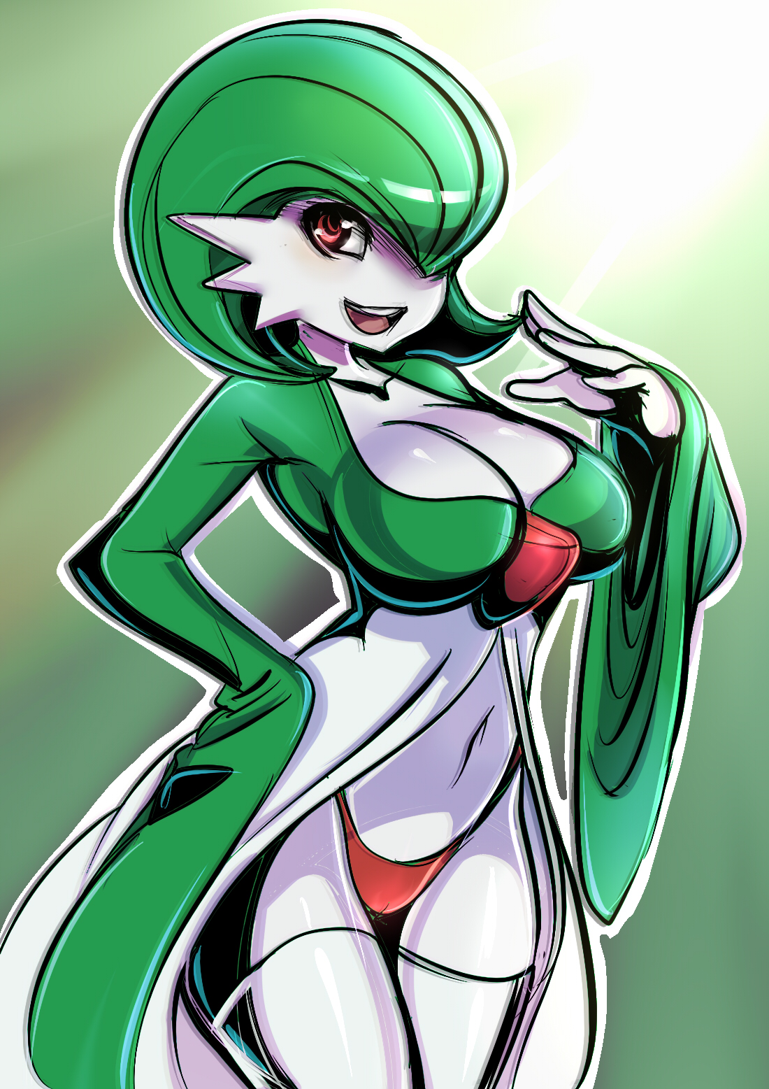 anthrobreastscameltoecleavagecurvydressfemaleFlag for Deletiongreen hairhair over one eyehand on hiphighleghighleg pantieshuge breastslarge breastslooking at viewerpale skinpantiespersonificationpokemonpokemorphred eyesred pantiesshort hairsmilesmilingsolothighhighsthongunderwearwhite legwearwhite skinwhite skinned femalewide hips