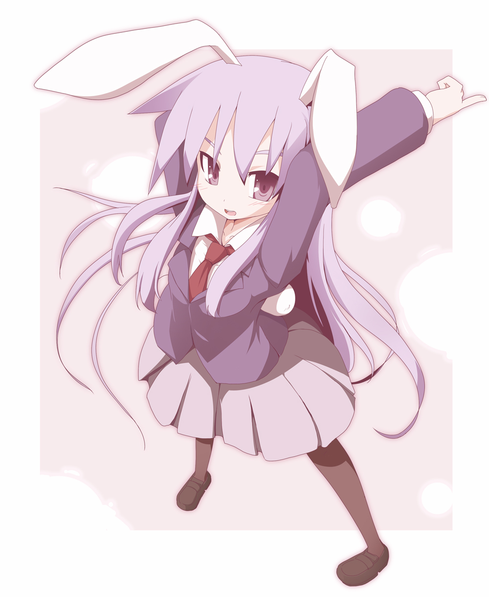1girlalternate costumeanimal earsblazerfemale focusjacketlong hairnecktiepleated skirtpurple hairrabbit earsred eyesred necktieschool uniformskirtsolothighhighs