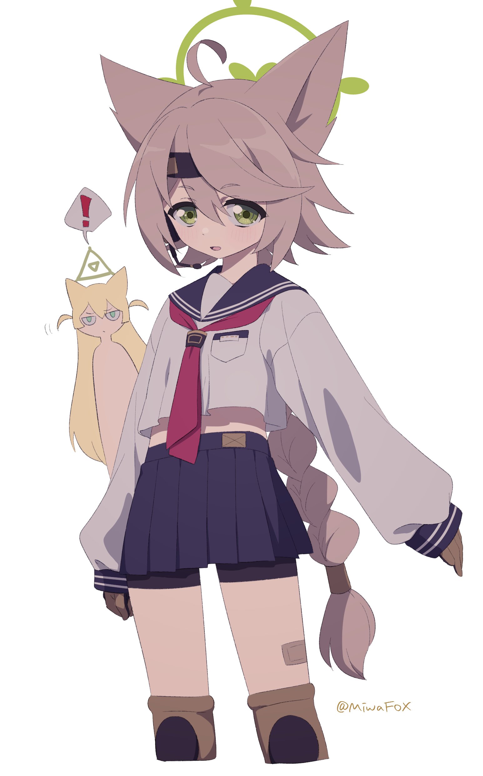 :d1boy2girlsahogeanimal earsaqua eyesbike shortsblack sailor collarblack shortsblack skirtblonde hairbraidbraided ponytailbrown glovesbrown hairclosed mouthcowboy shotcropped legsfox earsfox girlfrownglovesgreen eyesgreen halohair between eyeshaloimplied extra earsjitomeknee padslong hairlong sleeveslooking at viewerlow ponytaillow-tied long hairmidriffminiskirtmultiple girlsneckerchiefopen mouthpeeking outpleated skirtponytailred neckerchiefsailor collarshirtshortssimple backgroundskirtsmilesolo focusspeech bubblespoken exclamation markswept bangstriangle halotwitter usernametwo side upv-shaped eyebrowsvery long hairwhite backgroundwhite shirt