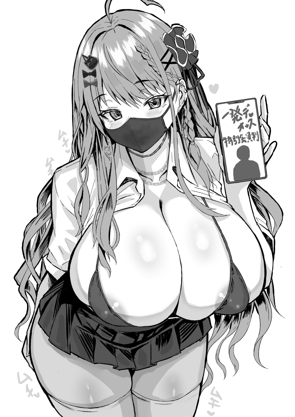 kikuta, medusa (fate), medusa (rider) (fate), fate/stay night, fate (series), 00s, 1girl, black dress, blindfold, breaker gorgon, breast suppress, breasts, cleavage, collar, collarbone, covered erect nipples, detached sleeves, dress, embarrassed, facial mark, female focus, fingernails, forehead mark, huge breasts, linea alba, long hair, long sidelocks, mask, open clothes, open shirt, pink collar, purple hair, shirt, sidelocks, solo, strapless, strapless dress, sweat, very long hair