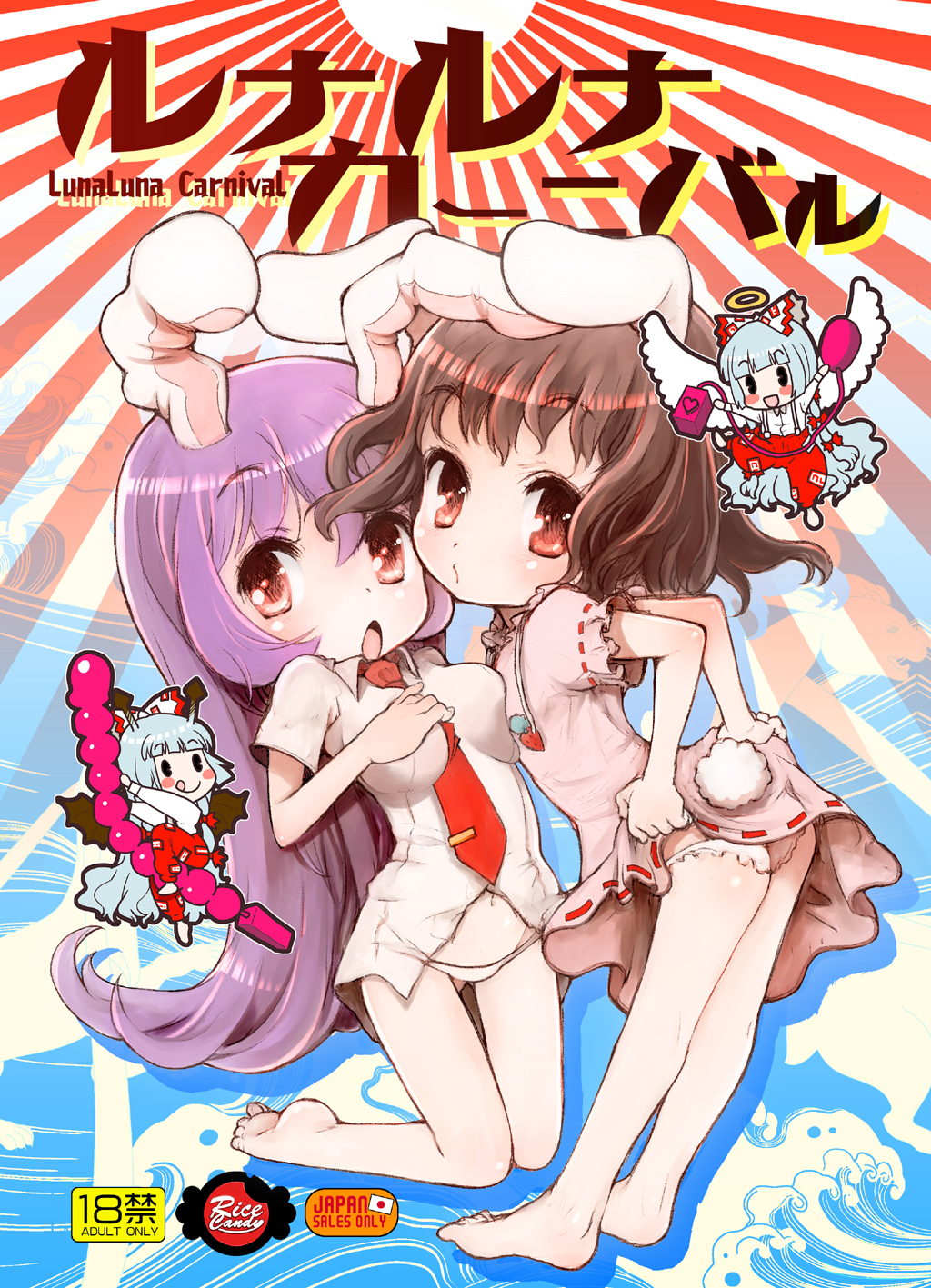 :q4girlsanimal earsbarefootbottomlessbrown hairchibiclothes liftdressdress liftfeetfemale focushair ribbonhalolong hairmultiple girlsnecktieno pantspantiespurple hairrabbit earsrabbit tailred eyesred necktieribbonsex toyshort hairtailtonguetongue outunderwearvibratorwings