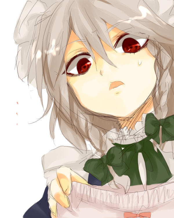 kikuchi seiji, nanashi, nanashi (duel savior), duel savior, game cg, 1girl, animal ears, bandaged arm, bandages, bow, bow panties, dark-skinned female, dark skin, fake animal ears, female focus, moe (phrase), panties, rabbit ears, school uniform, serafuku, short hair, skirt, solo, underwear, white hair, white panties, zombie