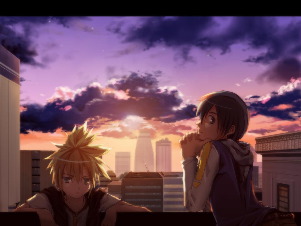 zol, byakko akiha, seiryuu tougo, suzaku natsuhime, haramasete seiryuu-kun!, 2girls, between breasts, blue eyes, blue hair, breast press, breasts, clothes lift, large breasts, mini person, miniboy, miniskirt, multiple girls, person between breasts, red eyes, red hair, school uniform, shirt lift, skirt, sweat, symmetrical docking