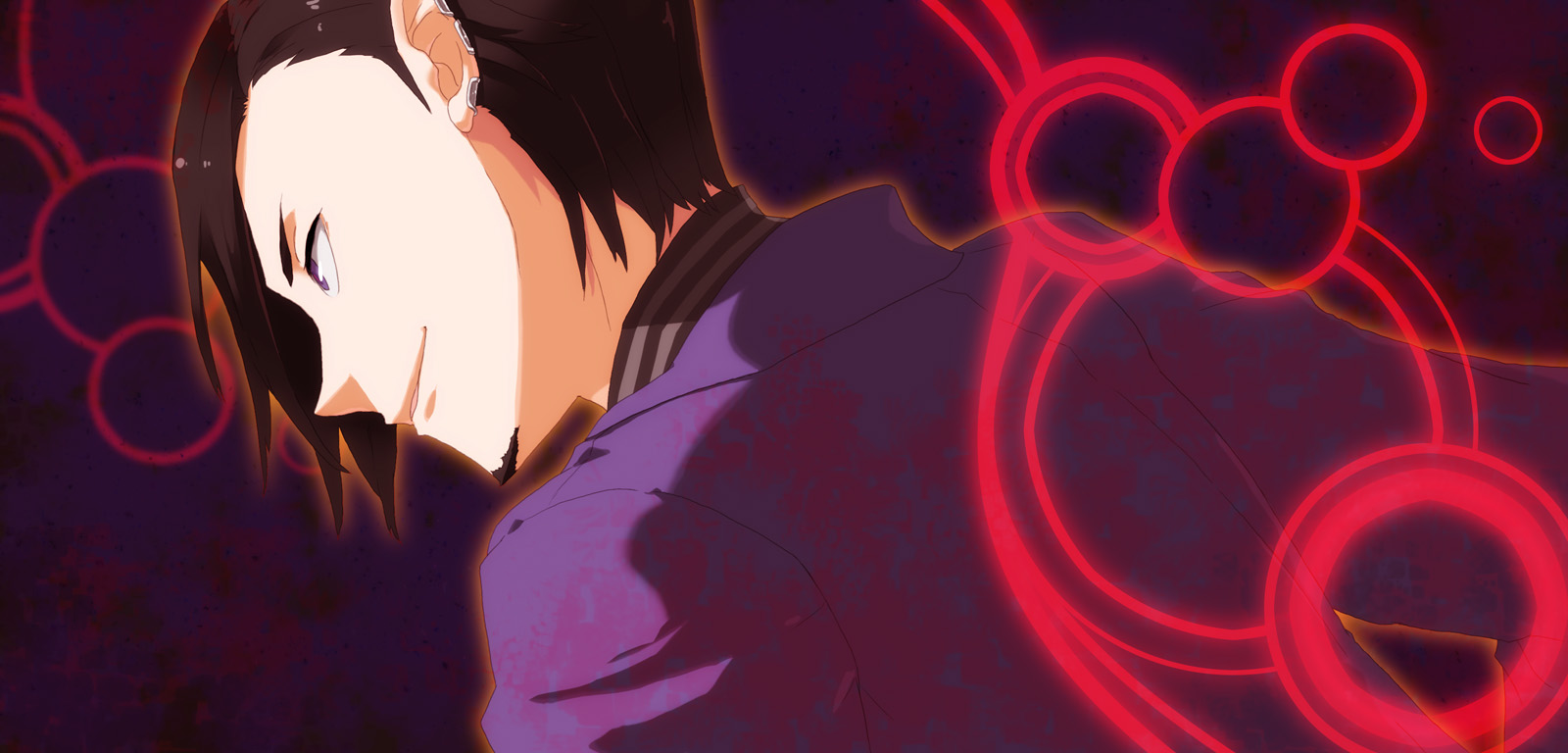 1boybeardbrown hairear piercingfacial hairformal clothesgoateemale focuspiercingpurple eyesshort hairsolosuit