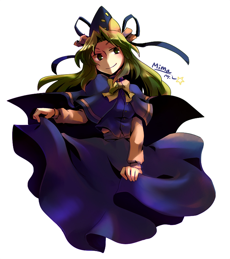 1girlcapeletcharacter namefemale focusgreen eyesgreen hairhatlong hairmatching hair/eyesshort hairsimple backgroundsolowhite backgroundwizard hat