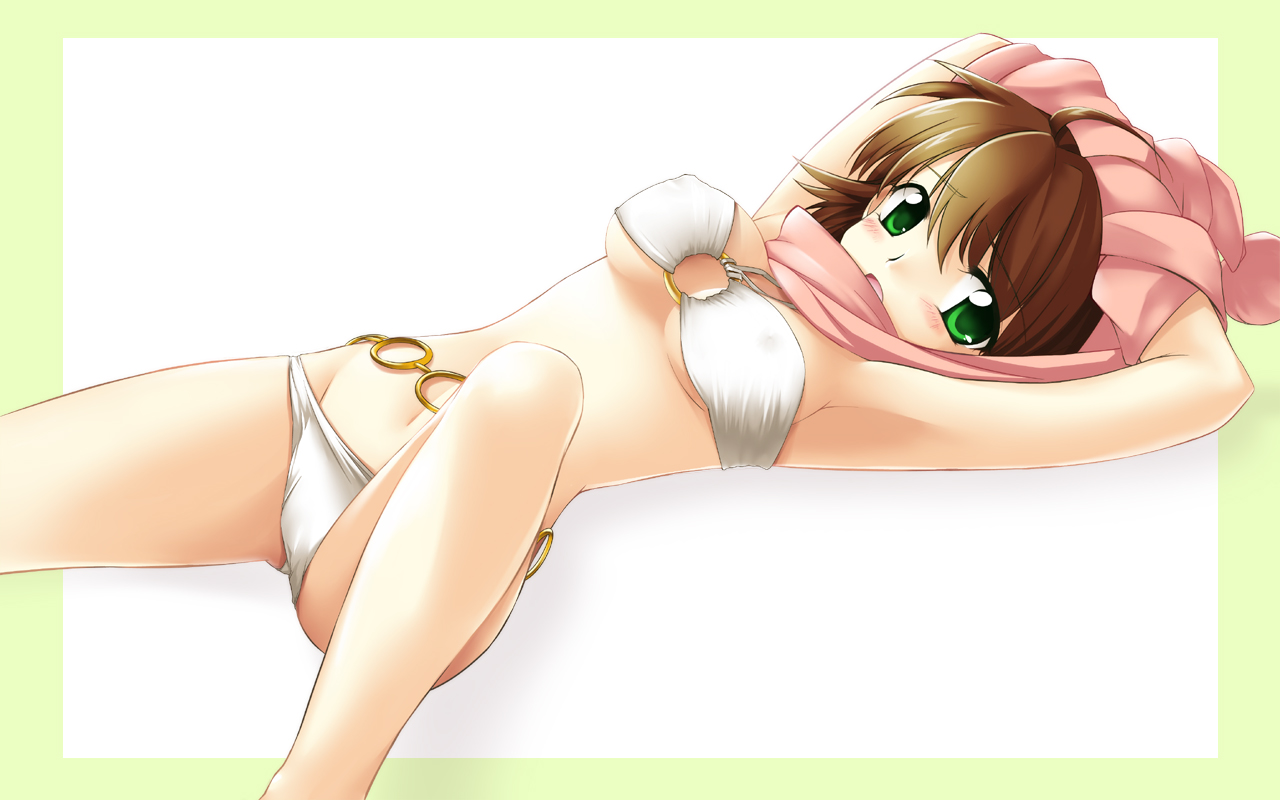 00s1girlarmpitsbandeaubikiniblushbreastsbrown haircovered erect nipplesfemale focusgreen eyeslooking at viewerlyingmedium breastso-ringo-ring topon backopen mouthscarfshort hairsoloswimsuitwhite bikini