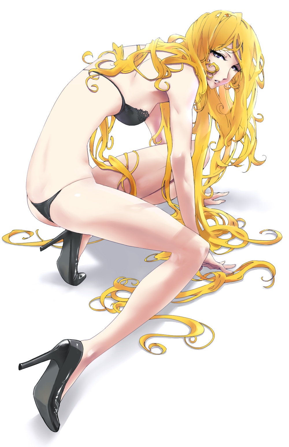 1970s (style)1girlassbackblack pantiesblonde hairblue eyesbrabreastscurly hairfemale focusflat assfull bodyhair spread outhigh heelslegslingerielipslong hairoldschoolpantiespinup (style)retro artstyleshoesskinnysmall breastssolothongunderwearunderwear onlyvery long hair