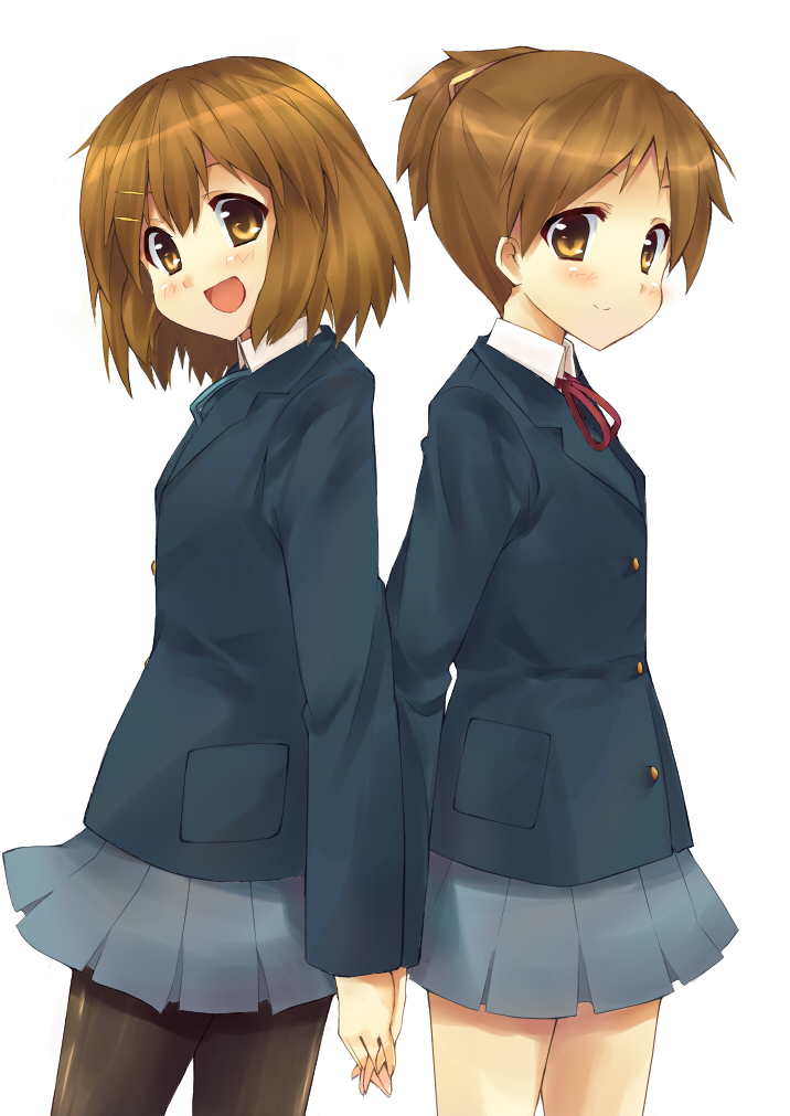 00s2girlsback-to-backblushbrown eyesbrown hairhair ornamentholding handsmultiple girlspantyhoseponytailschool uniformshort hairsiblingssisters
