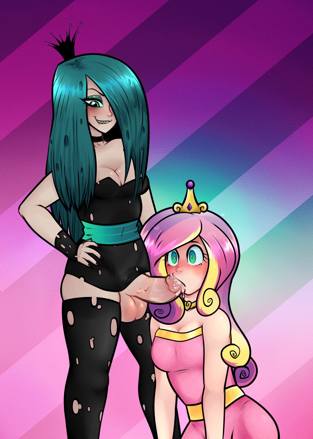 2girlsblack dressblack legwearblushchokercrowncumcum in mouthdresseyeshadowfangsfellatioFlag for Deletionfuta on femalefutanarigothgreen eyesgreen hairgreen sclerahairhair over one eyehumanhumanizedhypnosisintersexmakeupmind controlmulticolored hairmultiple girlsnaveloralpenispenis under clothespersonificationpink dresssharp teethsmilestripedstriped backgroundtesticlesthighhighstorn clothestorn dresstorn thighhighs