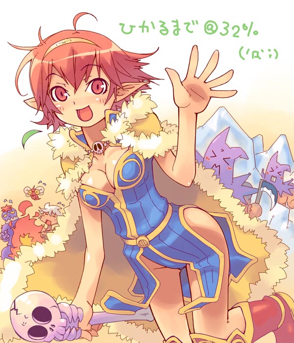 1girlbreastscleavagefemale focushairbandmedium breastspointy earsred eyesred hairshort hairskullsmilesolowizard