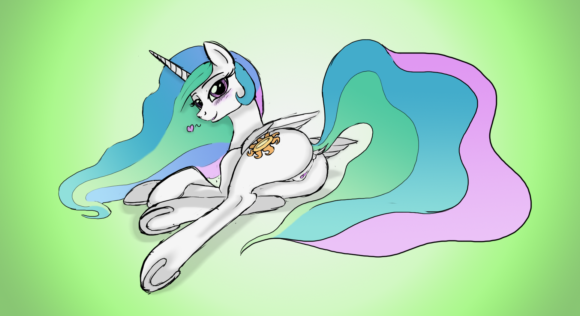 alicornassblushcutie markequinefemaleFlag for Deletionfurhairhalf-closed eyeshooveshornhorselong hairlooking at viewerlyingmammalon sidepresentingpresenting hindquarterspussywings