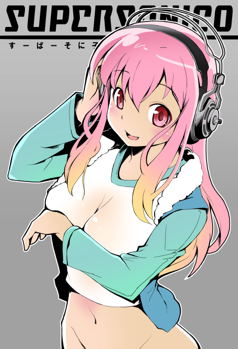 1girlsblonde hairbottomlesscharacter namefemaleFlag for Deletiongradient hairheadphoneslong hairlooking at viewermound of venusmulticolored hairnavelpink eyespink hairsolo