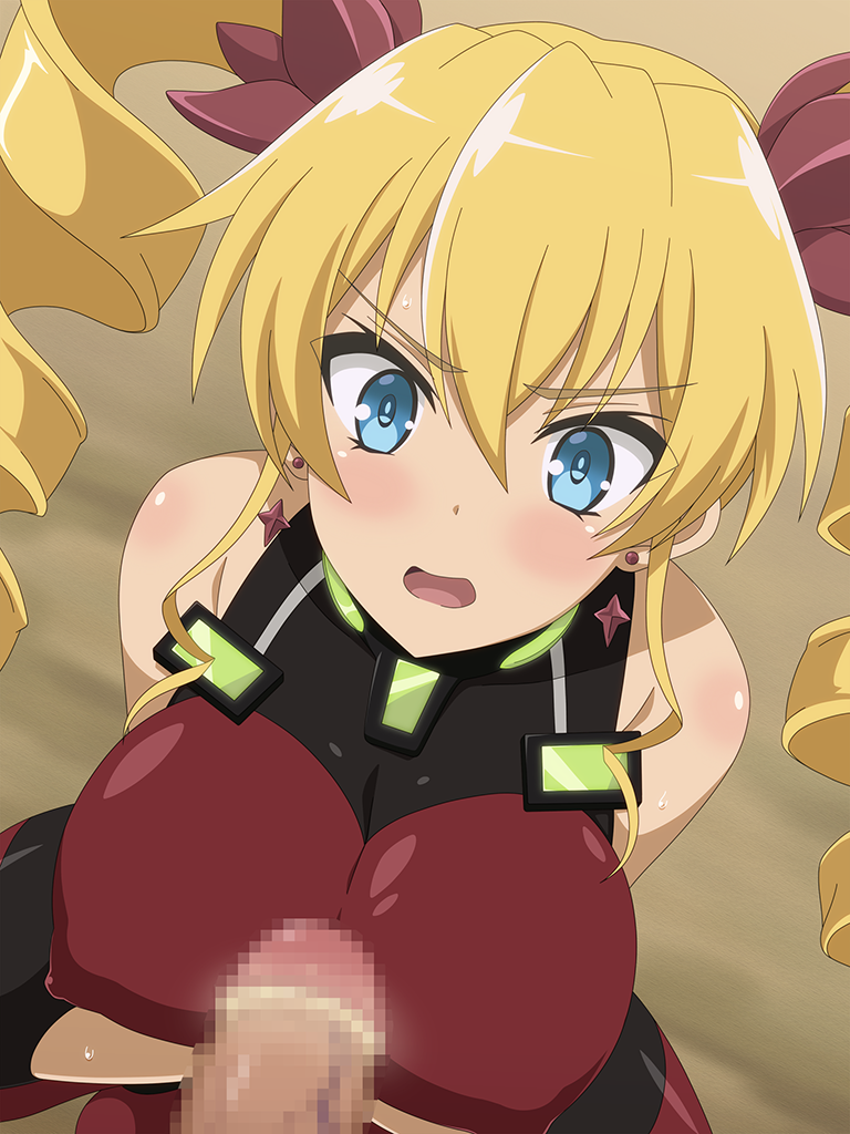 bare shouldersblonde hairblue eyesblushbreastsdrill hairerect nipplesfellatiofemaleFlag for Deletionhairlarge breastslong hairopen mouthoralsweattied hairtwintails