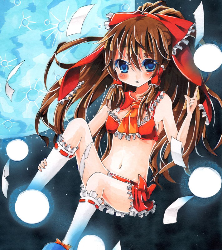 blue eyesblushbowbrown hairfemalefemale onlyFlag for Deletionhair tubeshairbowhumanleggingslong hairlooking at viewermidriffskirtsolo