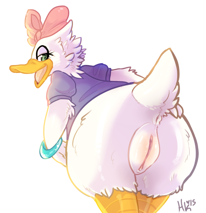 anthroanusassavianbeakbent overbirdbottomlessduckfemaleFlag for Deletiongreen eyeshair ribbonhairbowlooking backpresentingpussyribbonssolo