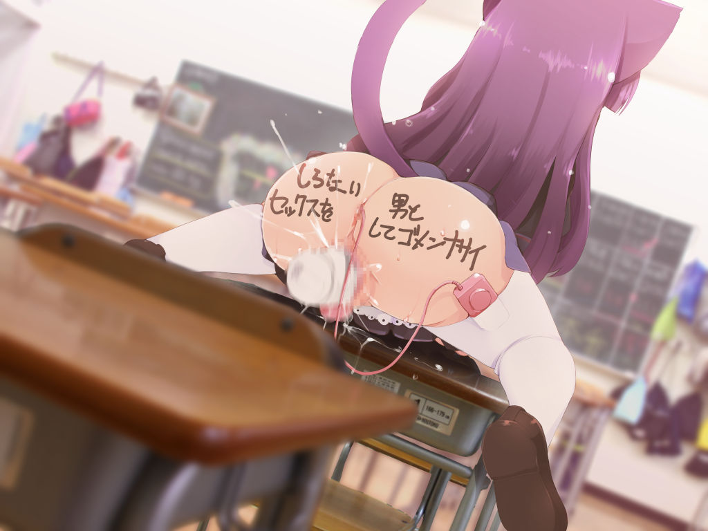 animal earsblushcat earscat tailclenched teethfemaleFlag for Deletionlong hairpurple hairpussypussy juicesolosweattailthighhighsvibratorvibrator in thighhighs