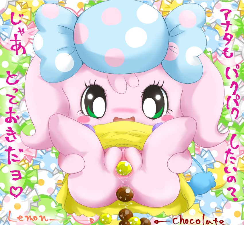 -cuteblushbowcandychocolateclothingdressFlag for Deletionfoodgreen eyesheartlemonlooking at viewerpussypussy juicesmileyoung