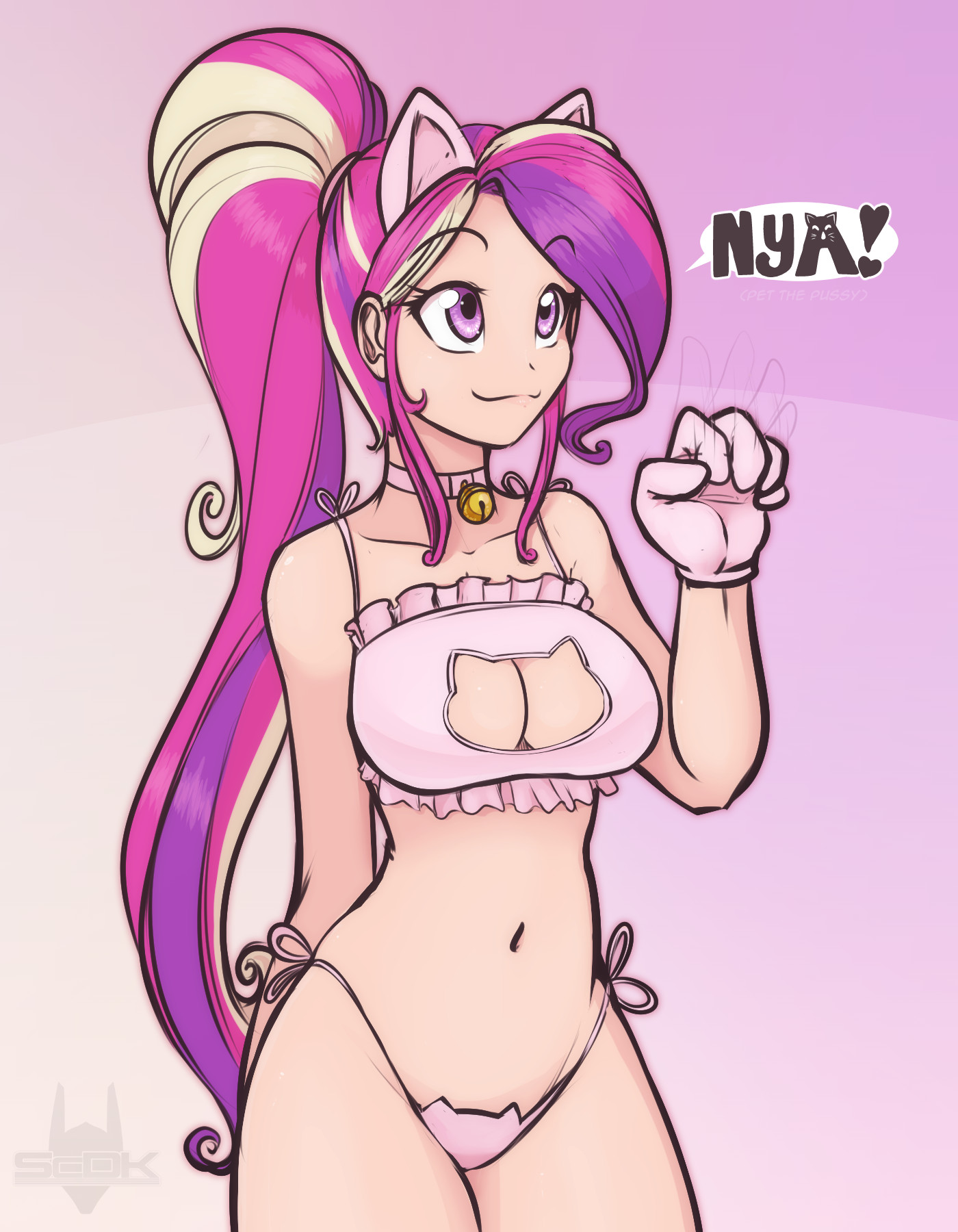 1girlsanimal earsbellbreastscat lingeriechokercleavagefemaleFlag for Deletiong-stringglovehand behind backhipshumanizedlarge breastslong hairmotion linesmulticolored hairnavelpantiespersonificationpink eyesponyponytailpurple eyessmilesolostandingtied hairvery long hairwavewaving