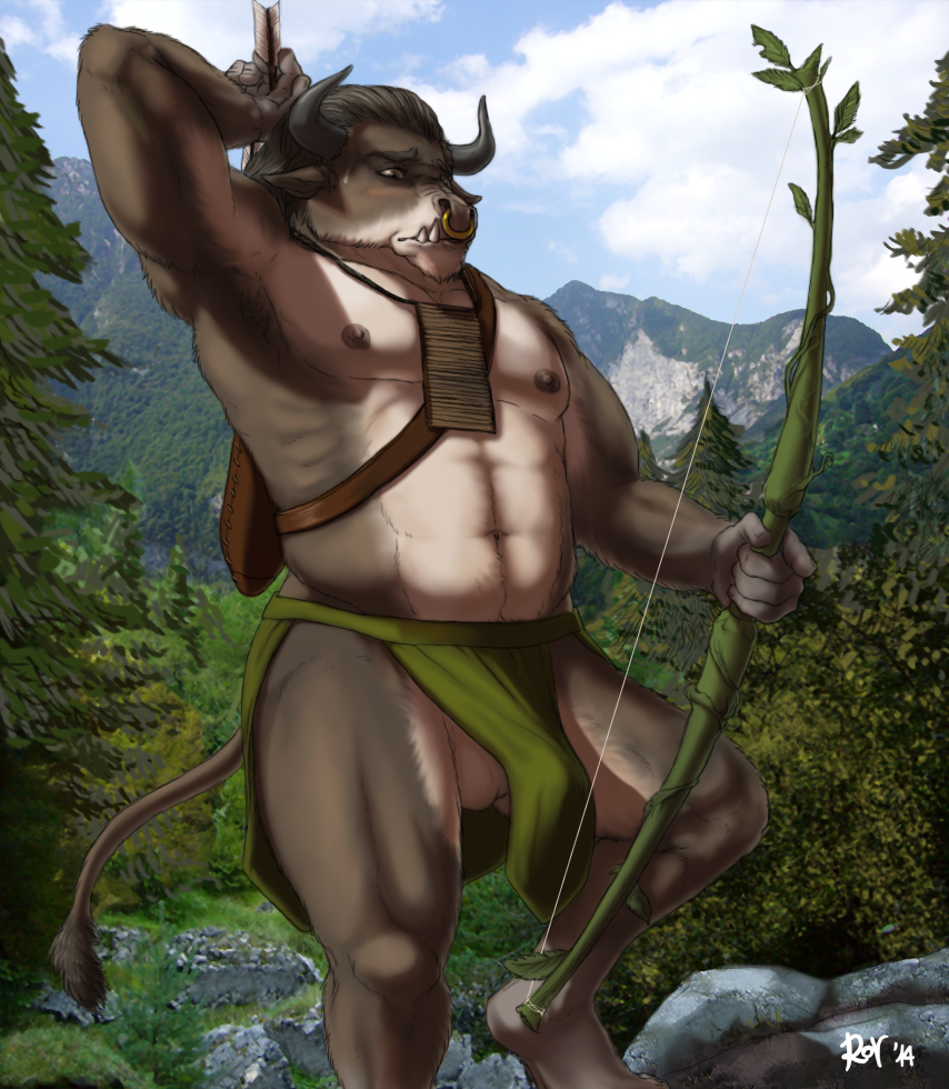 1boyabsanthroarmpitsballsbicepsblushbovinebow (weapon)bulgecattleerectionfacial piercingFlag for Deletionforestfurfurryhornloinclothmalemale onlymammalmusclesnose piercingnose ringoutsidepenispiercingranged weaponsolostandingtreevideo gamesweapon
