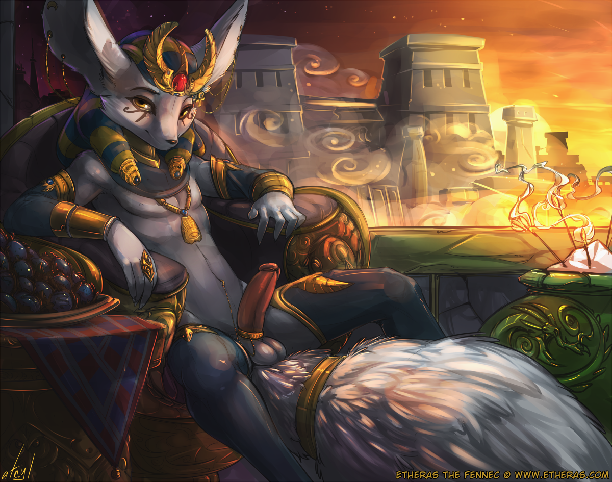 amber eyesambiguous fruitankhanthrobig earsbraceletcaninecock ringear piercingegyptianfennecFlag for Deletionfoxfurgirlygoldincensejewelryloinclothlong earslooking at viewermalemammalnecklacepecspenispiercingsittingskysolotemplethronewhite fur