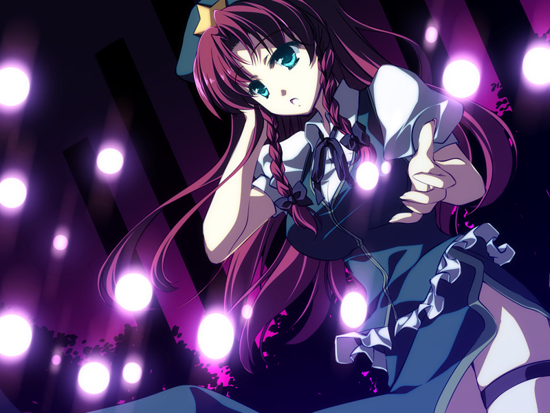 1girlaqua eyesbraidchina dresschinese clothesdressfemale focushatlong hairoutdoorsred hairskysolotwin braids