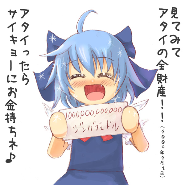 1girlahogechequecircled 9fangfemale focushappyholdingholding signmoneysignsimple backgroundsmilesoloyou're doing it wrong