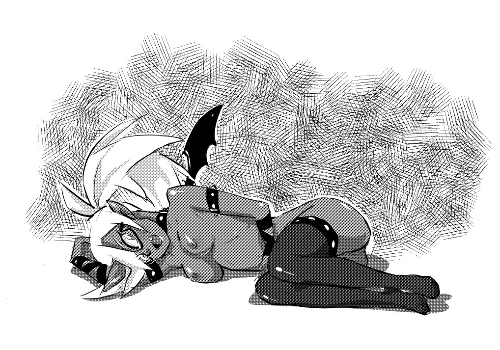 bottomlessbreastscute fangdemon girldemon wingsFlag for Deletionglasseslyingnaked thighhighsnipplesnudesmilesolothighhighstoplesswings
