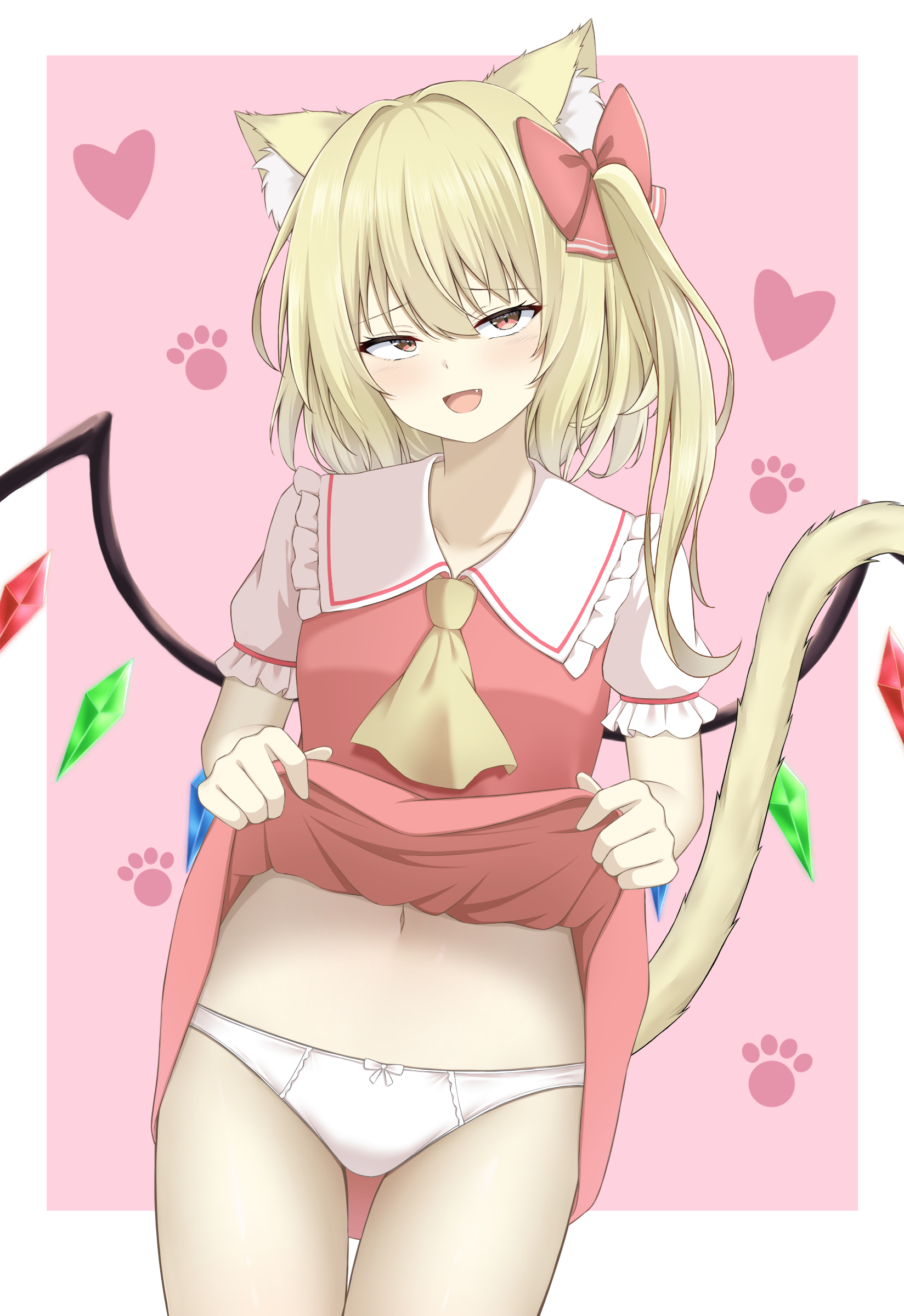:d1girlanimal ear fluffanimal earsascotblonde hairblushborderbowbow pantiescat earscat girlcat tailclothes liftcowboy shotcrystal wingseyelashesfangfrilled shirt collarfrillsfurrowed browhair between eyeshair bowhalf-closed eyeshands upheartkemonomimi modelifting own clotheslooking at viewermedium hairnaughty facenavelno headwearone side upopen mouthoutside borderpantiespaw printpink backgroundpuffy short sleevespuffy sleevesred bowred eyesred skirtred vestshirtshort sleevessimple backgroundskirtskirt liftsmilesolostraight hairtailtail raisedthigh gaptsurimeunderwearupturned eyesvestwhite borderwhite pantieswhite shirtwingsyellow ascotyellow tail
