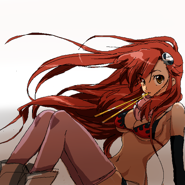 00s1girlbikinibikini top onlybreastscleavageelbow glovesfemale focusgloveshair ornamentlong hairmouth holdpink thighhighsred hairscarfsoloswimsuitthighhighs