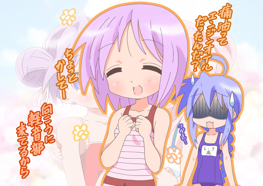 00sahogeblue hairbraidclosed eyeslong hairone-piece swimsuitpurple hairschool swimsuitshort hairswimsuit