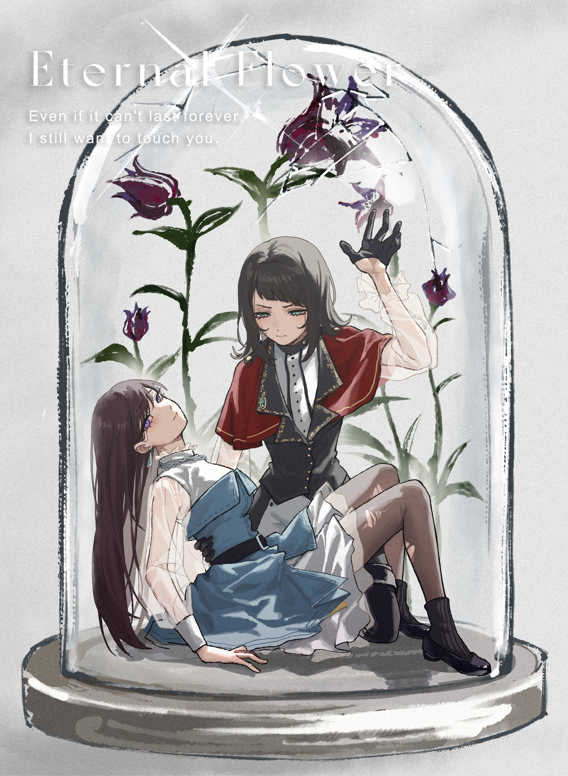 yurihi koi, 1girl, animal ears, blush, brown hair, cat ears, coat, crossed arms, female focus, frown, green eyes, long hair, ponytail, solo, sweat